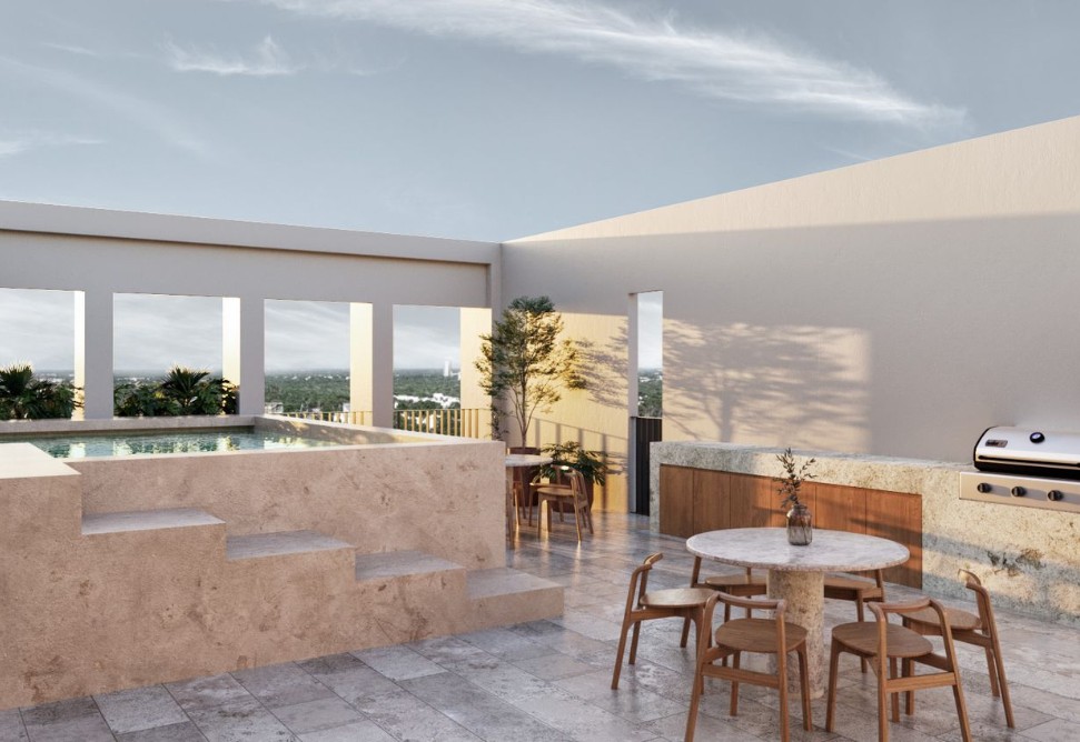 Amenidades: Roftop, piscina, área social y área de grill, estacionamiento.