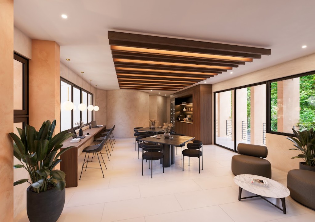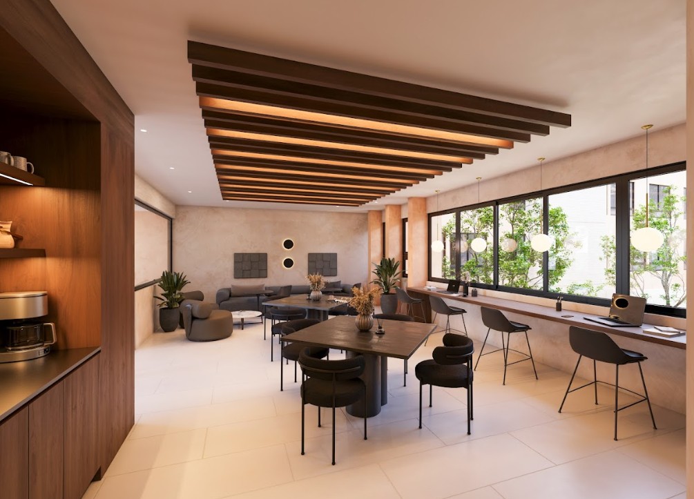 Entre sus amenidades podrás disfrutar de: Recepción, asoleadero, casa club, asoleadero, piscina, canal de nado, zona de gril, lavandería, bike parking, plaza verde, open lobby, etc.